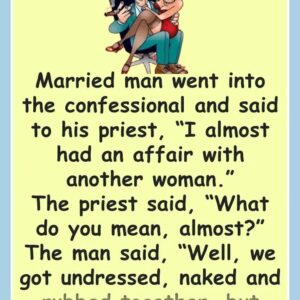 Married man went into the confessional and said to his priest, “I almost had an affair with another woman.” The priest said, “What do you mean, almost?”…