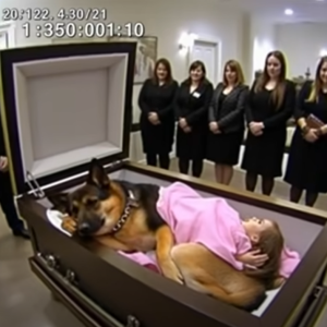 A German Shepherd refused to leave a little girl’s coffin—what happened next stunned everyone. The funeral