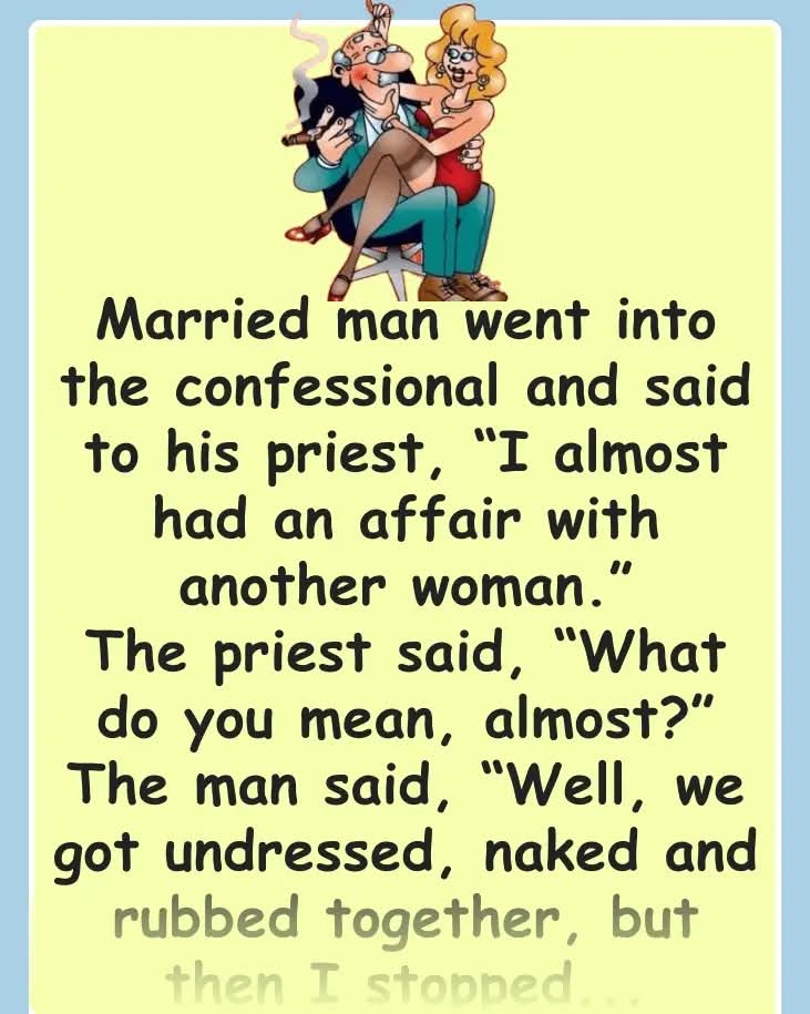 Married man went into the confessional and said to his priest, “I almost had an affair with another woman.”