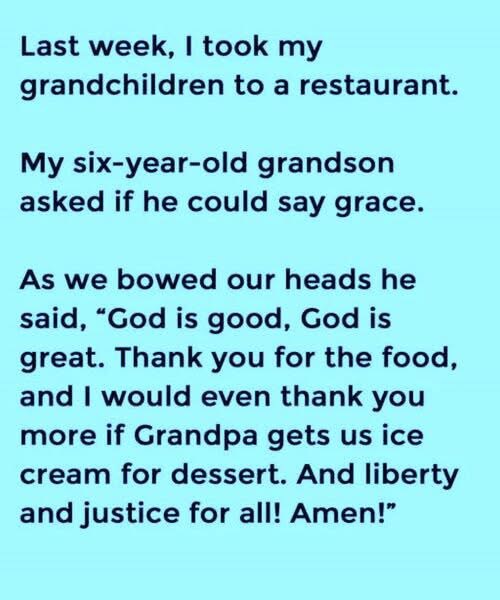 Thank you for the food… and I would thank you even more if Grandpa gets us ice cream for dessert.
